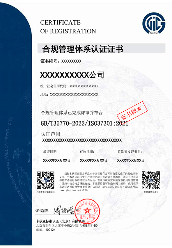 合规管理体系证书样本