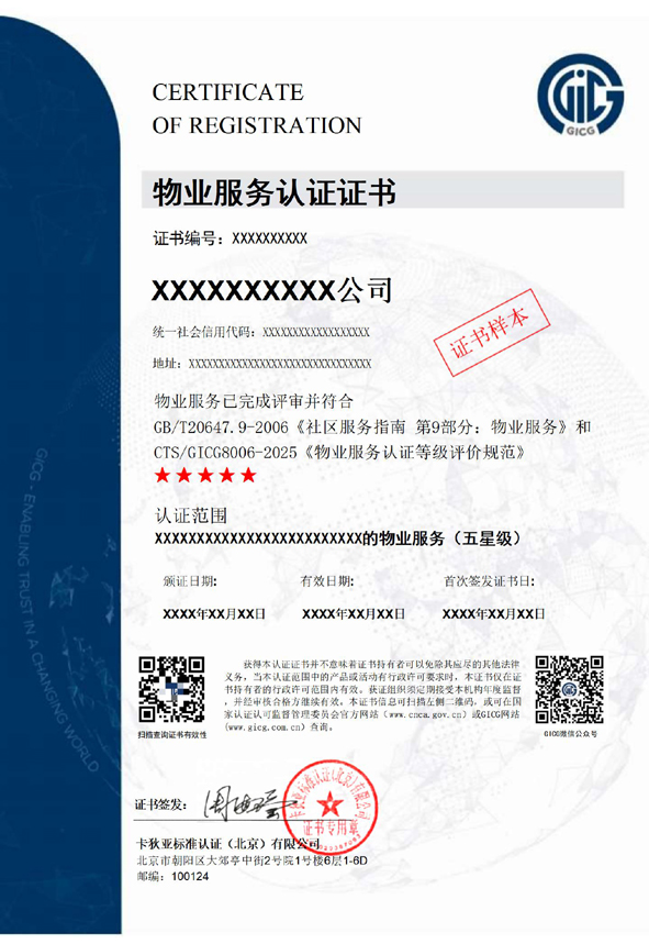 物业服务认证证书样本