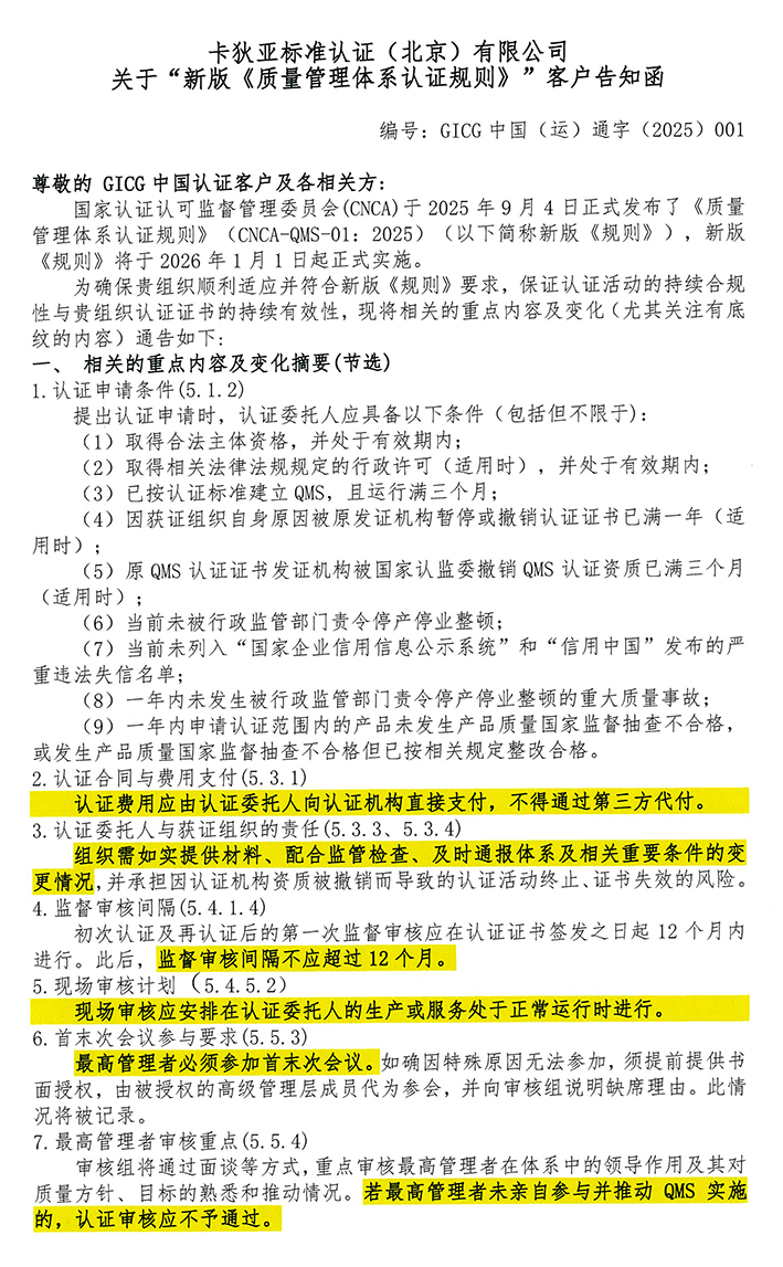认证规则告知客户函