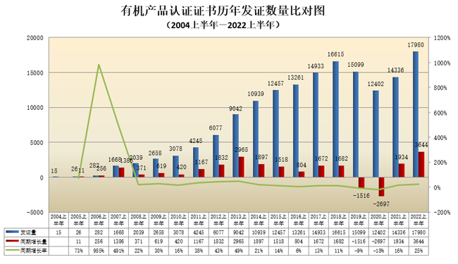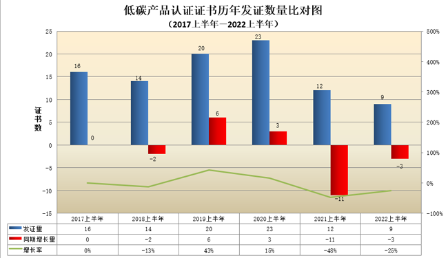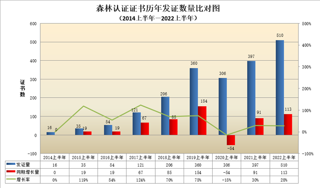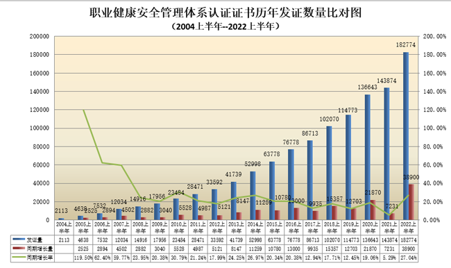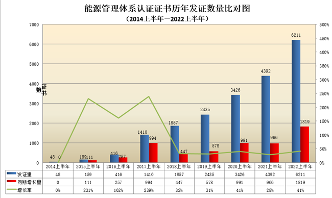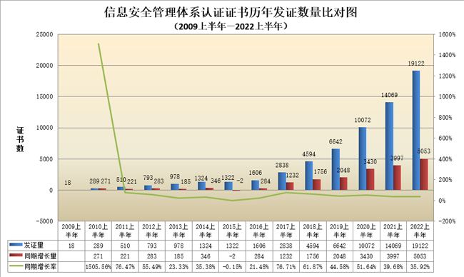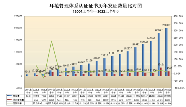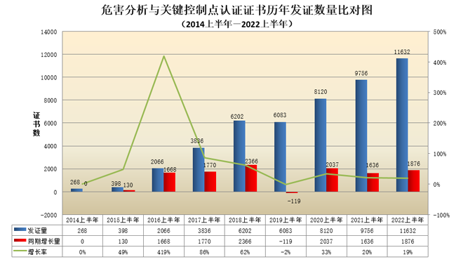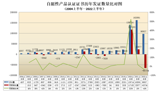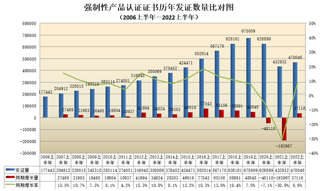 2022上半年与2021上半年 各领域有效认证证书发证量比对图