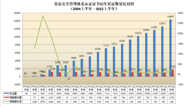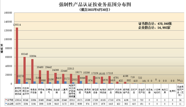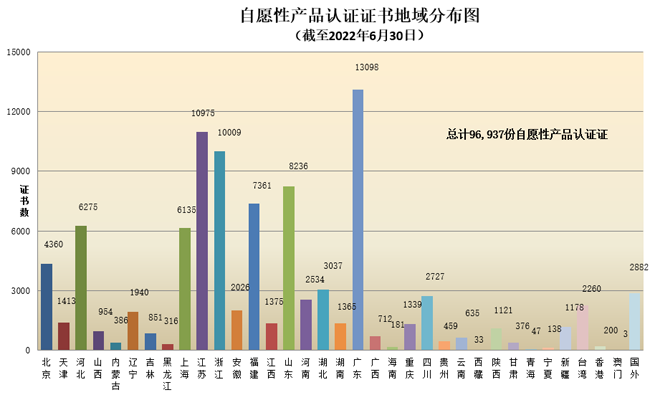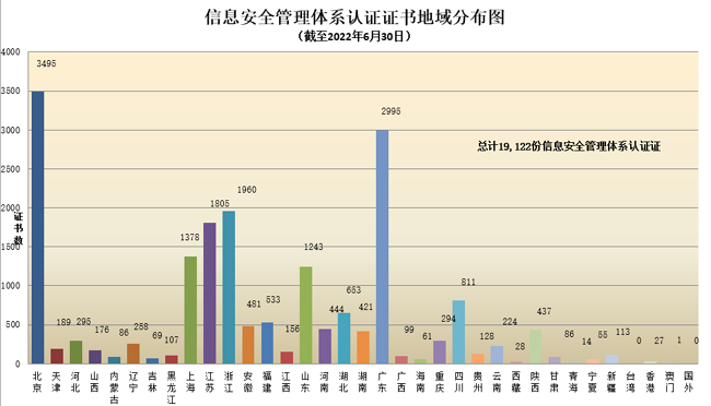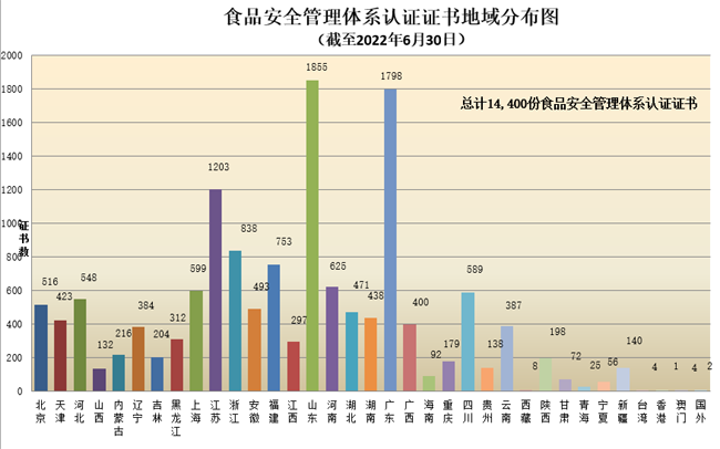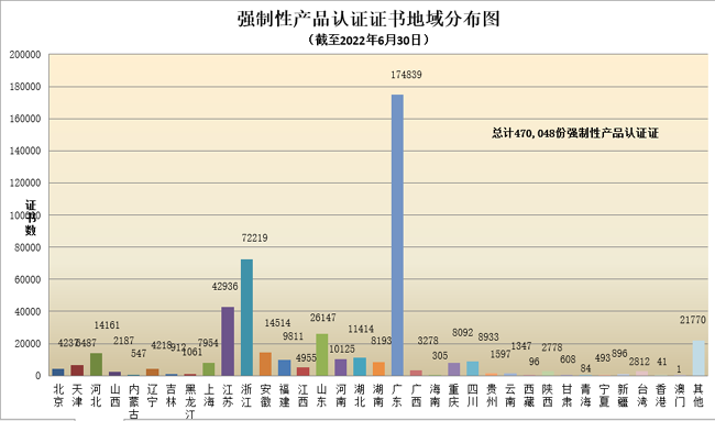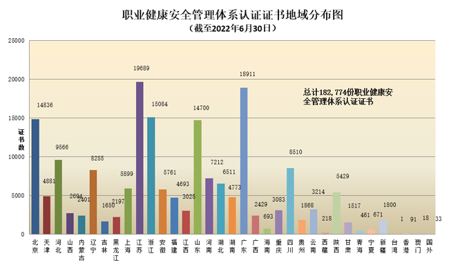 日前,中国合格评定国家认可委员会(CNAS)发布2022年认证机构认可半年报,对截至2022年6月底CNAS认可认证机构颁发的认证证书总量、分类统计、地域统计、暂停撤销注销证书数量等予以了公布。详情如下: 截至2022年6月30日,225家获CNAS认可的认证机构,共颁发现行有效认证证书1,416,177份。 162家质量管理体系认证机构,共颁发认证证书377,739份; 150家环境管理体系认证机构,共颁发认证证书200,027份; 140家职业健康安全管理体系认证机构,共颁发认证证书182,774份; 38家食品安全管理体系认证机构,共颁发认证证书14,400份; 33家信息安全管理体系认证机构,共颁发认证证书19,122份; 28家基于ISO/IEC 20000-1的服务管理体系认证机构,共颁发认证证书10,529份; 34家危害分析与关键控制点认证机构,共颁发认证证书11,632份; 6家良好生产规范认证机构,共颁发认证证书272份; 3家软件过程及能力成熟度评估认证机构,共颁发认证证书75份; 34家能源管理体系认证机构,共颁发认证证书6,211份; 1家大型活动可持续性管理体系认证机构,共颁发认证证书4份; 4家业务连续性管理体系认证机构,共颁发认证证书157份; 3家知识产权管理体系认证机构,共颁发认证证书915份; 64家自愿性产品认证机构,共颁发认证证书96,937份(组织数:13,283家); 35家强制性产品认证机构,共颁发认证证书470,048份(组织数:51,279家); 34家有机产品认证机构,共颁发认证证书17,980份(组织数:10,920家); 17家良好农业规范认证机构,共颁发认证证书629份(组织数:586家); 11家森林认证认证机构,共颁发认证证书510份(组织数:482家); 3家服务认证认证机构,共颁发认证证书5972份(组织数:3410家); 1家低碳认证认证机构,共颁发认证证书9份; 3家复合木制品认证机构,颁发认证证书55份; 1家人员认证机构,注册的QMS级别审核员数80份; 7家温室气体审定/核查机构,共颁发审定/核查报告100份。
