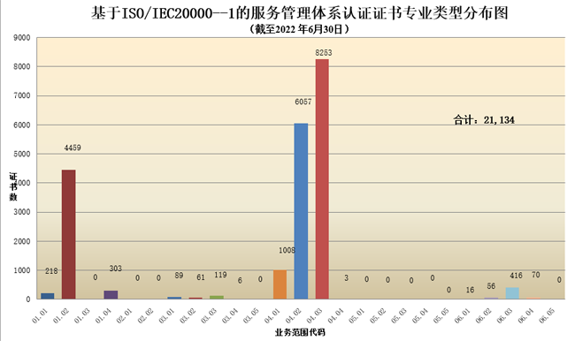 基于ISO/IEC 20000-1的服务管理体系认证证书专业类型分布图