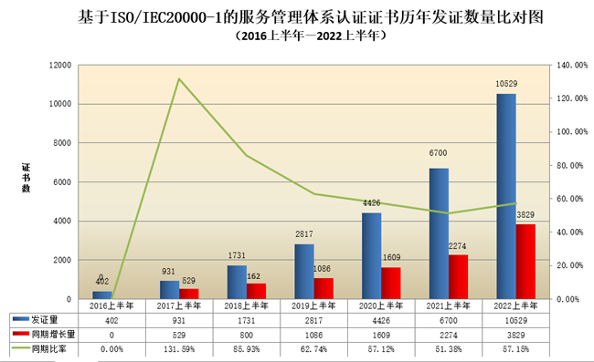 基于ISO/IEC 20000-1的服务管理体系认证证书历年发证数量比对图