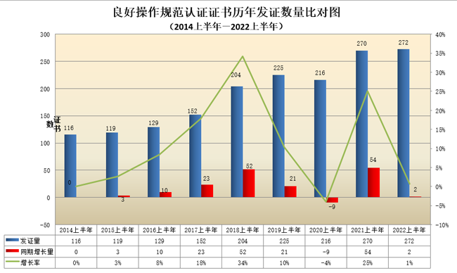 2022上半年与2021年底 各领域有效认证证书发证量比对图