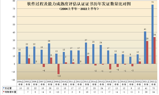 软件过程及能力成熟度评估认证证书历年发证数比对图