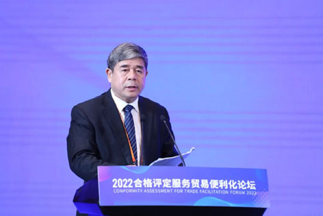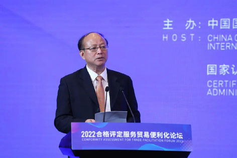 9月5日,2022年中国国际服务贸易交易会“合格评定服务贸易便利化论坛”在京举行。本次论坛以“合格评定:全方位开放与实践”为主题,旨在全面提升合格评定服务贸易便利化水平,更好地推动全方位开放和高质量发展。论坛由中国国际贸易促进委员会(以下简称中国贸促会)和国家认证认可监督管理委员会共同举办。市场监管总局副局长田世宏、中国贸促会副会长陈建安出席论坛并致辞。