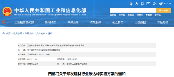 关于印发建材行业碳达峰实施方案的通知 工信部联原〔2022〕149号