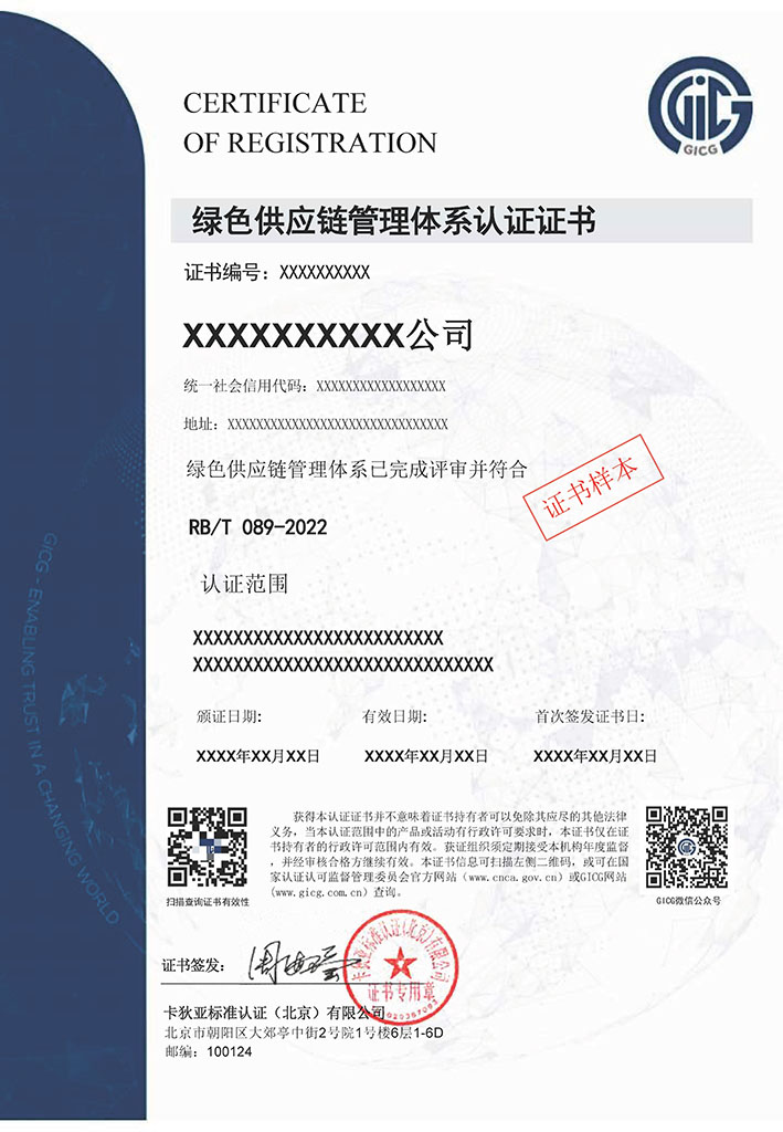 绿色供应链证书样本