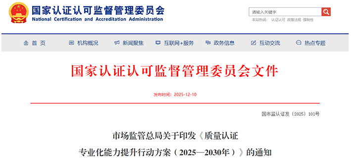 国市监认证发〔2025〕101号 市场监管总局关于印发《质量认证专业化能力提升行动方案(2025—2030年)》的通知