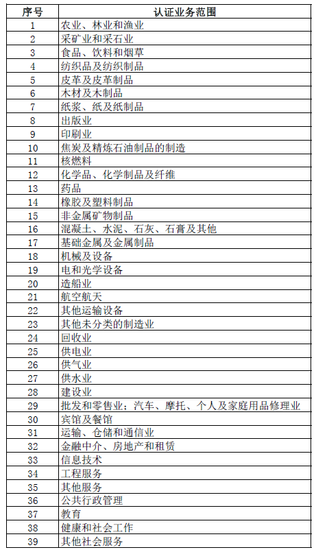 1、认证业务范围: ●质量管理体系 ●环境管理体系 ●职业健康安全管理体系 ●工程建设施工企业质量管理规范 ●医疗器械质量管理体系 ●石油天然气工业健康、安全与环境管理体系(HSE) ●诚信管理体系 ●反贿赂管理体系 ●业务连续性管理体系 ●道路交通安全管理体系 ●合规性管理体系 ●保安服务管理体系 ●供应链安全管理体系 ●碳管理体系认证 ●企业碳足迹管理体系 ●温室气体排放管理体系 ●碳中和管理体系 ●绿色电力管理体系 ●园林绿化养护管理体系 ●批发业和零售业服务认证: --商品售后服务认证 ●不动产服务认证: --物业服务认证 2、碳核查及可持续发展业务: ●ESG(环境、社会、治理)评价 ●温室气体核查 ●碳足迹核查 ●绿色设计产品评价 ●绿色工厂评价 ●绿色供应链评价 ●绿色园区评价 ●企业节能诊断服务 ●生命周期评价(LCA)服务等 3、创新发展及其它技术服务 ●验厂等二方审核 ●培训服务 ●节能评价 ●节能审查 ●节能监察 ●低碳发展规划 ●技术服务创新成果与激励机制评价报告 ●数字领航评价报告 ●智能制造服务报告 ●数智化评价报告 ●绿色发展规划报告 ●绿色发展顶层规划报告 ●绿色发展顶层规划与执行情况报告 ●绿色环保制度与体系建设评价报告 ●绿色发展实施路径报告 ●绿色采购报告 ●企业社会责任报告 ●企业节能评估报告 ●企业可持续发展报告 ●废水废气废固评价报告 ●无害化措施报告 ●清洁生产工艺技术报告 ●可持续发展管理计划 ●数智化绿色低碳体系建设综合评价报告 ●产品设计合理性报告 ●绿色环保改造升级报告 ●能耗降低评价报告 ●产品原料选择评估报告 ●产品设计先进性评估报告 ●绿色生产评价报告 ●绿色运输评价报告 ●绿色供应链评价报告 ●供应链保障措施评价报告 ●绿色回收评价报告 ●其它技术服务